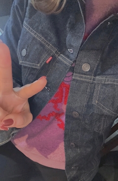 2月もよろしくお願いします(*^^*) 、 今日出勤してます(*^^*) 、 まじいま1番お気に入りで1番着てる💜🧸の服に 、 ちょーーーーかわいいーーーーデニムジャケット合わせーーーー 、 かわいすぎん?🤦♀️👼💕 、 、