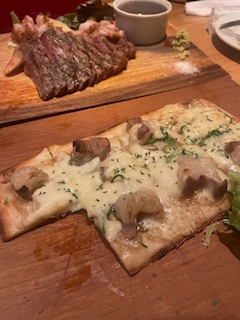 隣乃かれんです🤹 今日も出勤してます! ↓食べかけだけど、めちゃ美味しかったピザみたいなの✨