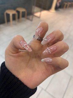 隣乃かれんです🐿️ 今日も出勤してます! めちゃ雪降ってるので気をつけて下さーい!⚠️ ↓ちょっと前にまたラブリーネイルになりました💓