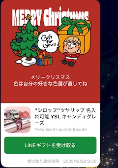 お客様からサプライズでLINEギフト頂いた🎄🎁 粋な心意気がうれしい🥹🫶 リップ中毒💄🤦🏻♀️